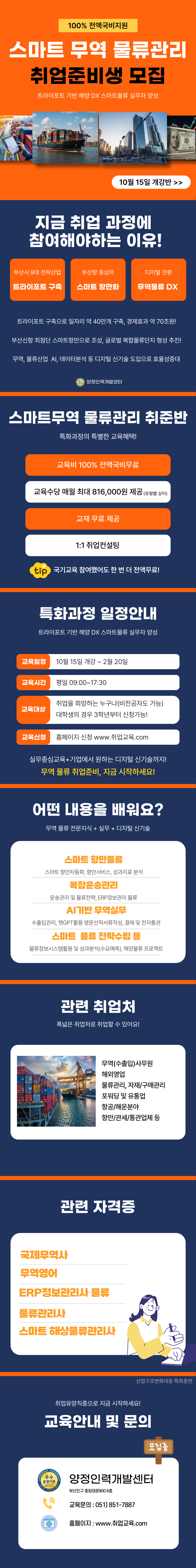 - 과정명 : 스마트무역・해양 물류관리 실무자 양성