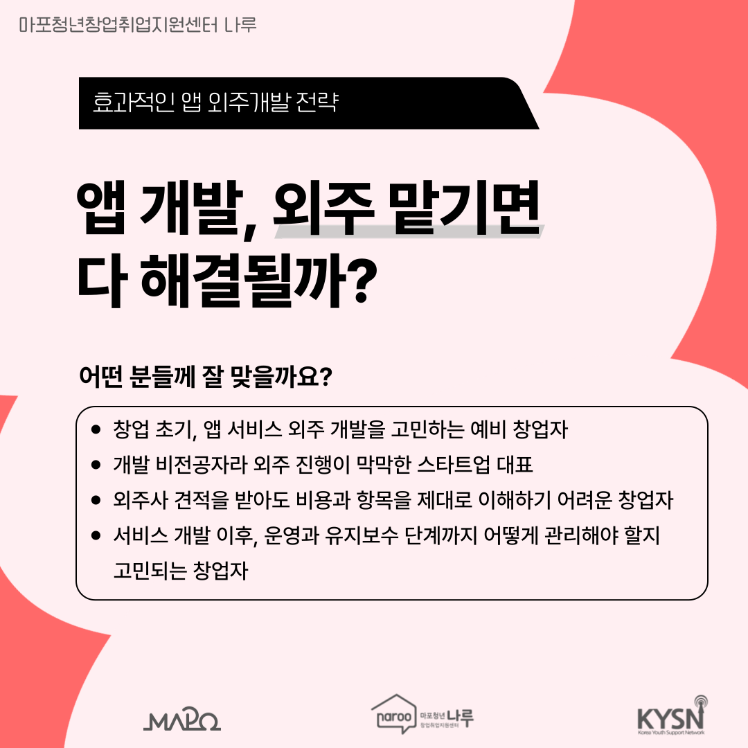 ☑ 앱/서비스 개발을 외주로 진행하려는 예비·초기 창업가