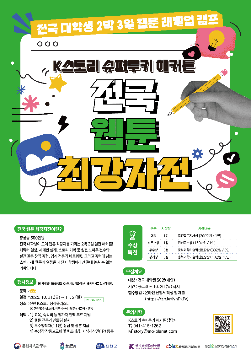 [진천K스토리창작클러스터] 총 상금 500만원, 전국 대학생 웹툰 최강자전! 참여자 모집