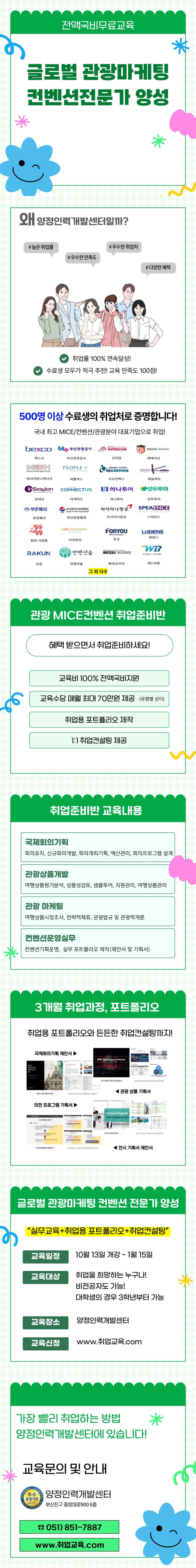 🚨이제는, 관광·MICE컨벤션 전문가로 양정인력개발센터에서 시작하세요!