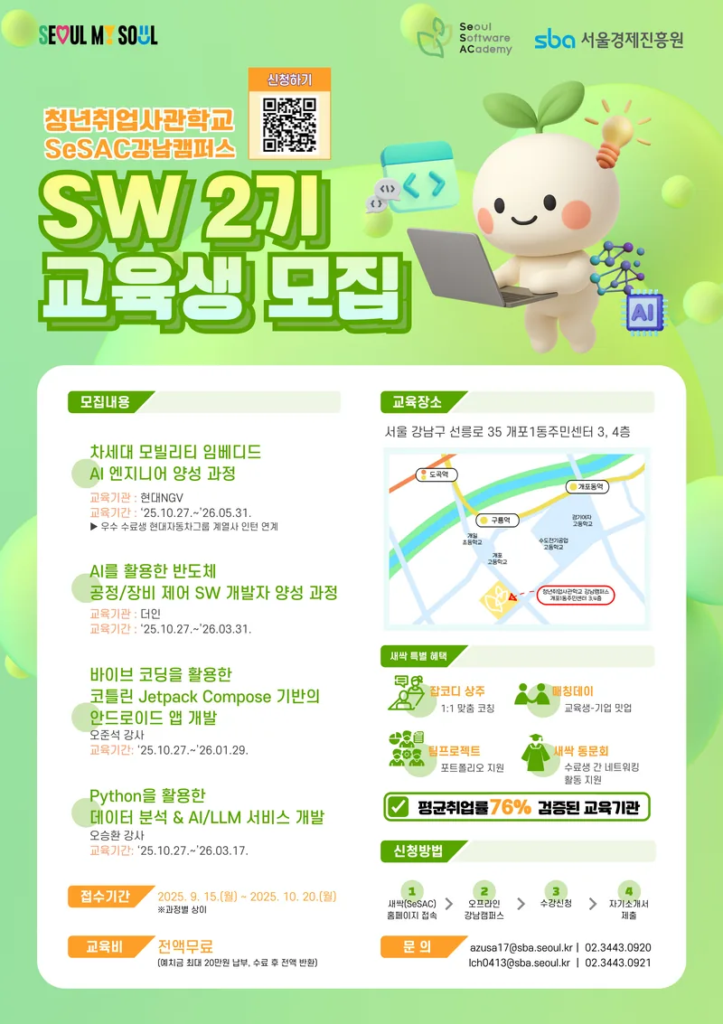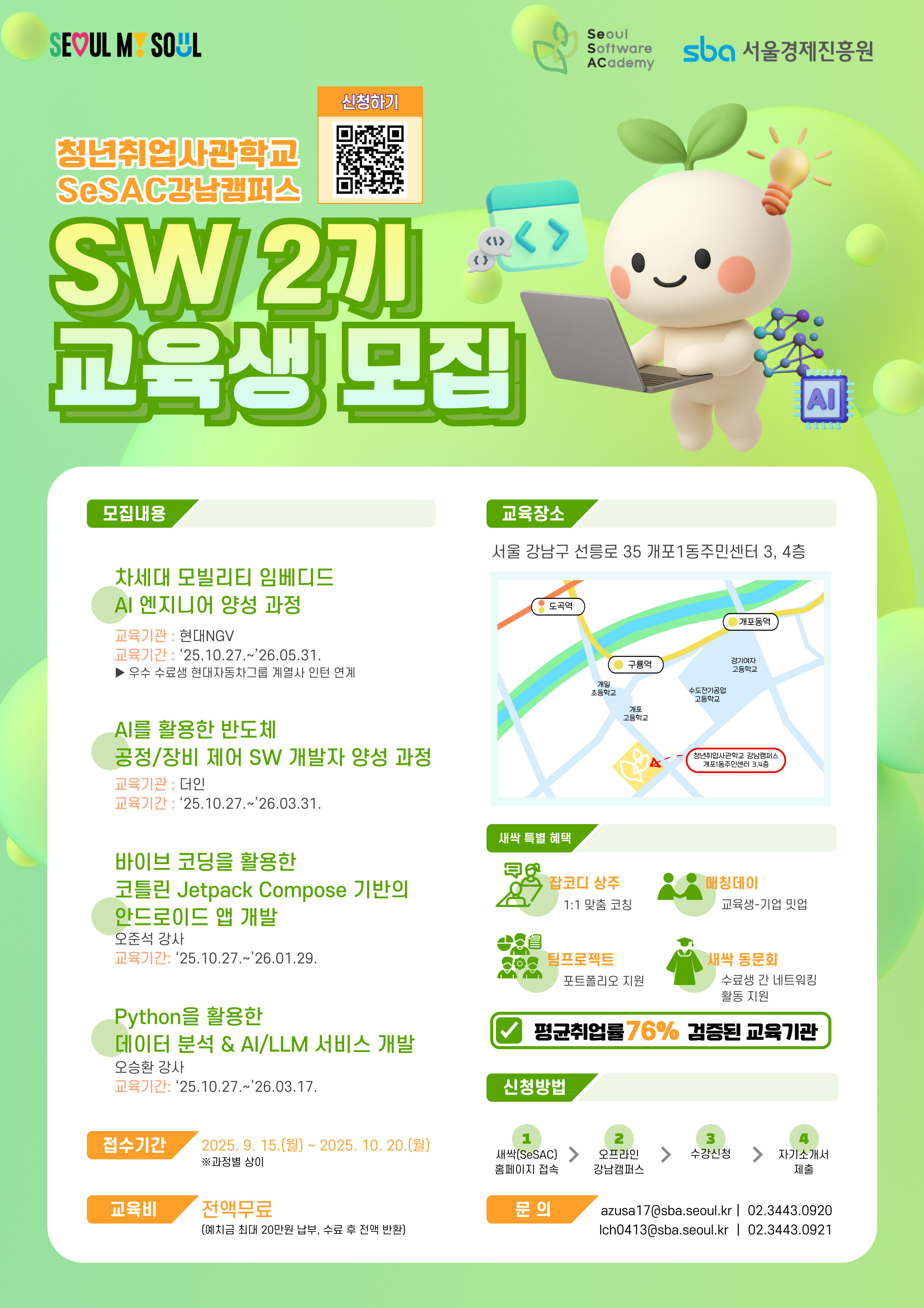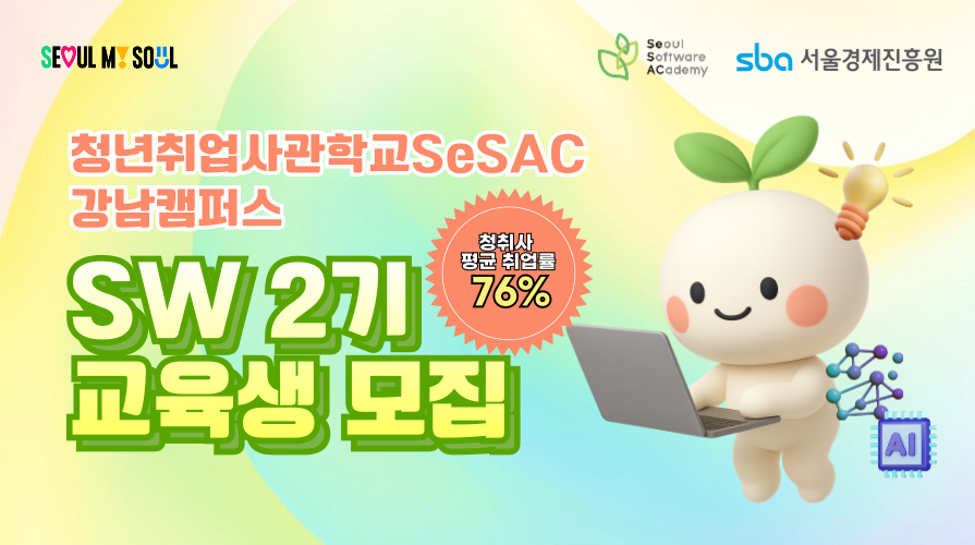 [서울경제진흥원] 🌱청년취업사관학교 새싹(SeSAC) 강남캠퍼스🌱 교육생 모집(~10/20) SW 2기 교육생 모집