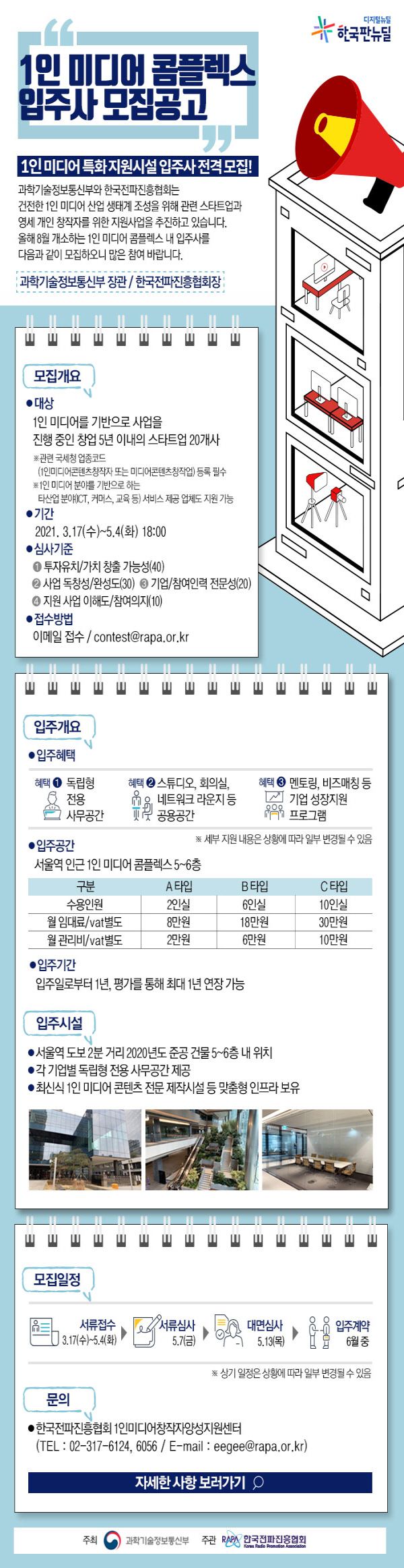 o 모집대상 : 1인 미디어를 기반으로 사업을 진행 중인 창업 5년 이내의 스타트업