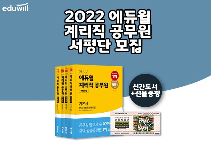 <2022 에듀윌 계리직 공무원 기본서 서평단>에 참여하시고, 신간도서와 문화상품권 받아가세요!