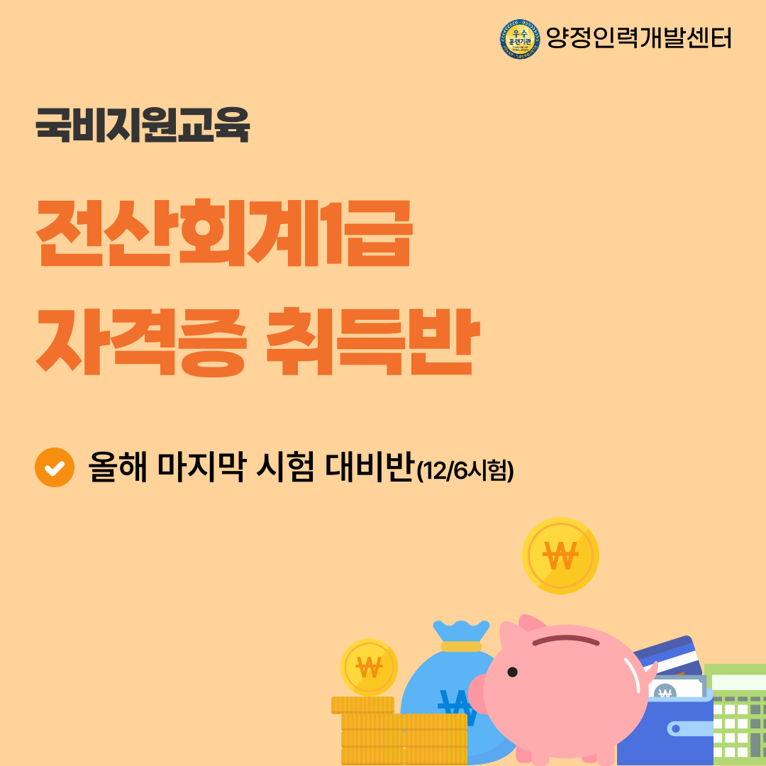 ★올해 마지막 시험(12/6) 대비반! 20일만에 전산회계1급 자격증 취득하자!