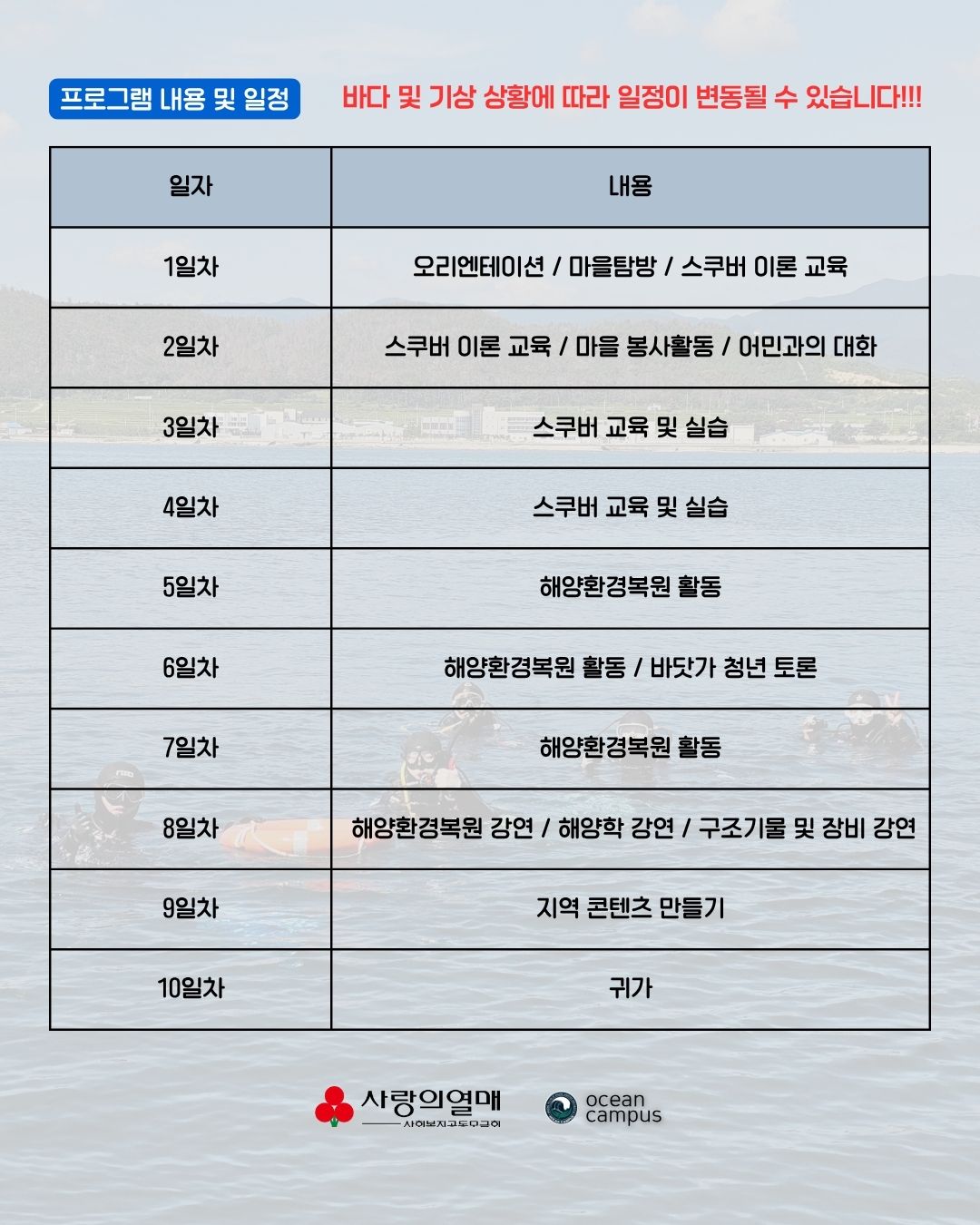 단순한 다이빙이 아닌, 해양환경 보호와 어촌의 삶을 배우고, 지역 주민과 함께 바다를 되살리는 실천형 활동!