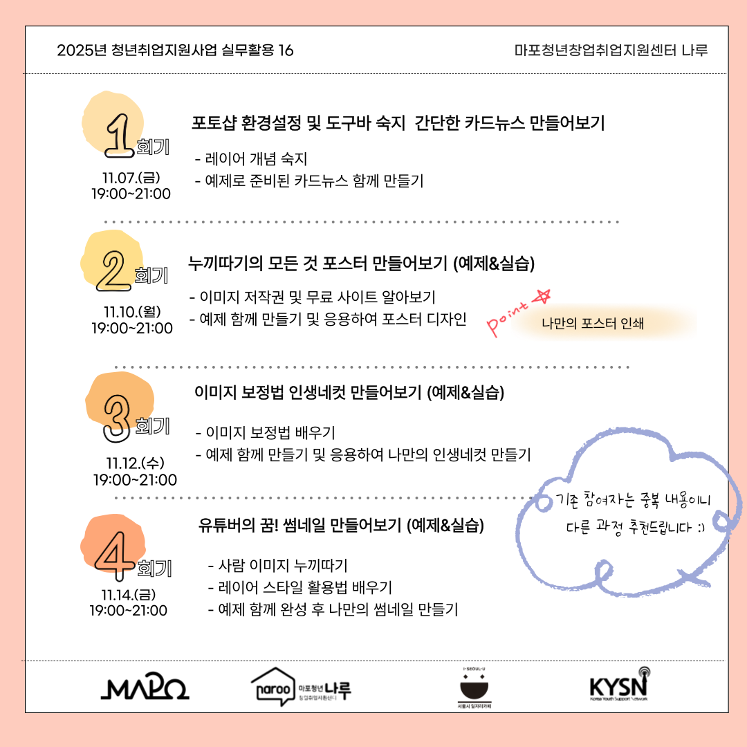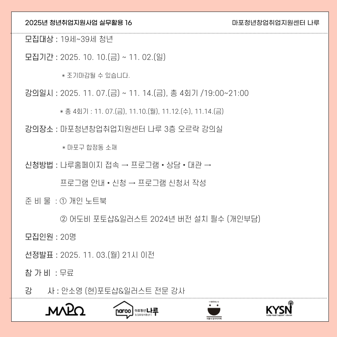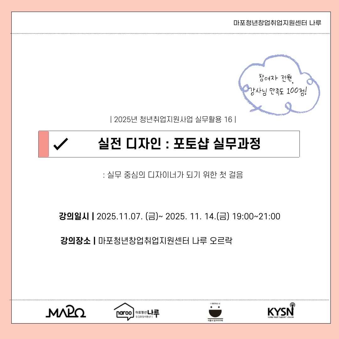 포토샵 실무능력을 향상하고 싶은 청년들을 위해 나루에서 준비했어요!