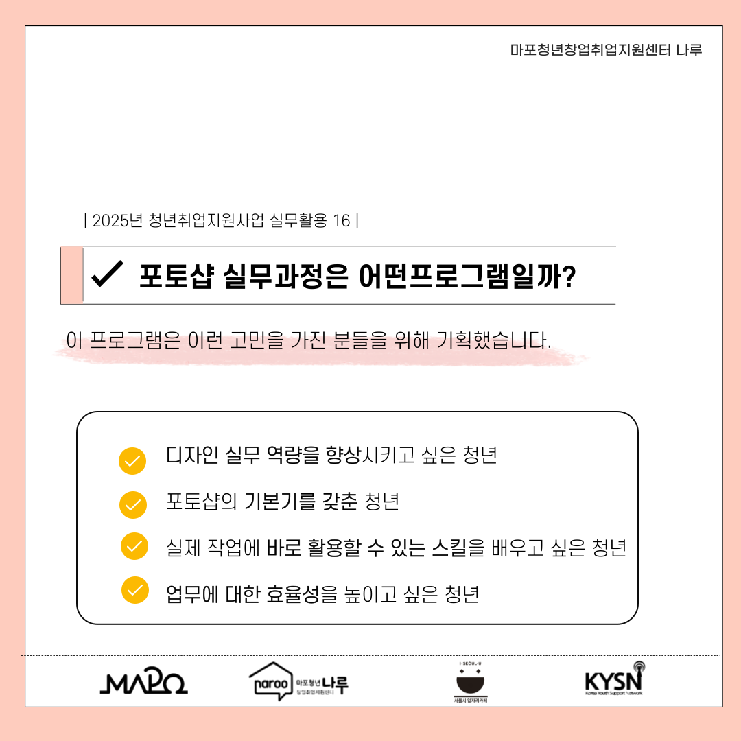 ☑ 디자인실무스킬을 향상하고 싶은 청년