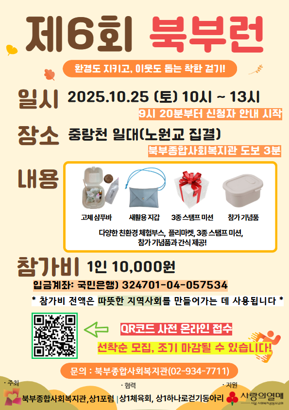 북부종합사회복지관과 상1포럼이 공동주최로 중랑천 걷기행사를 10월 25일에 개최합니다.