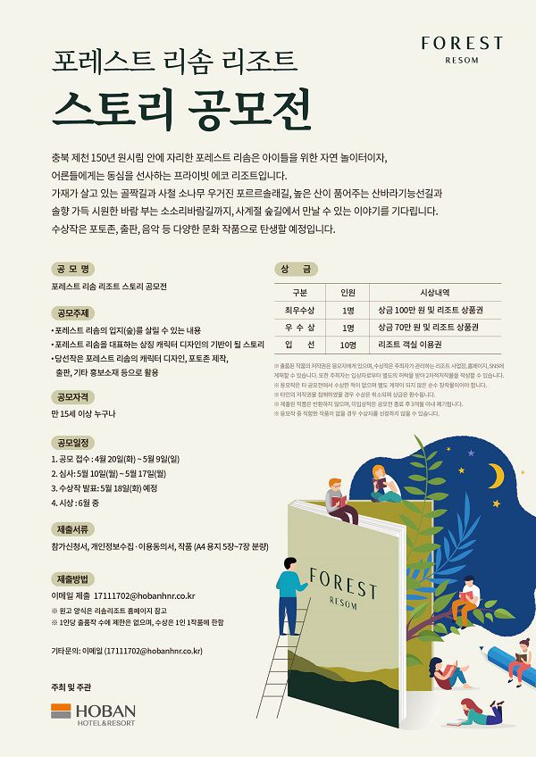 - 당선작은 포레스트 리솜의 캐릭터 디자인, 포토존 제작, 출판, 기타 홍보소재 등으로 활용