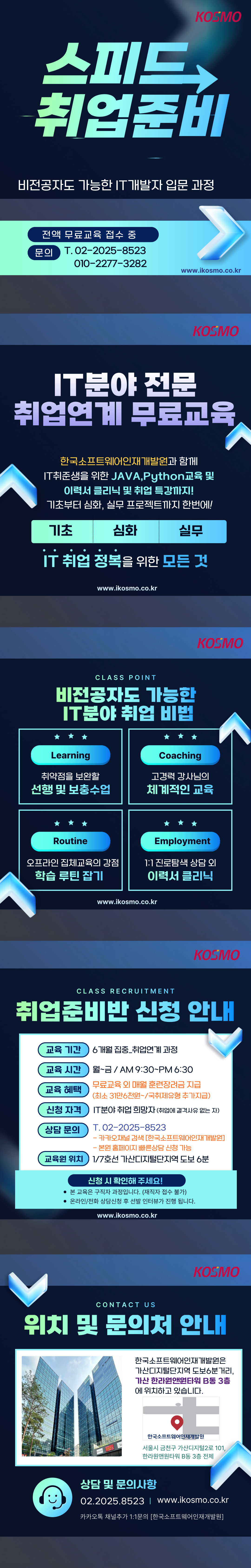 - 홈페이지 : https://www.ikosmo.co.kr (한국소프트웨어인재개발원)