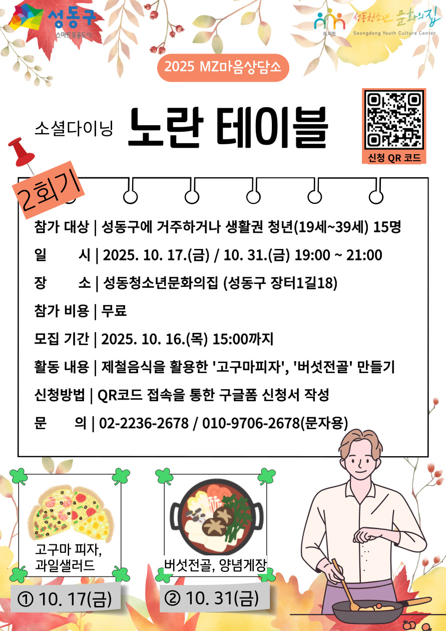 ◆ 활동장소 : 성동청소년문화의집 2층 조리실 (서울특별시 성동구 장터1길18)