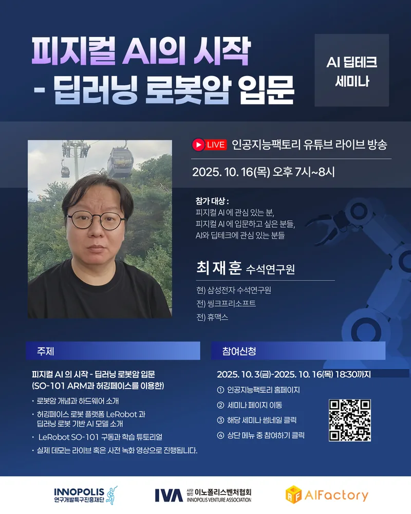 #AI,#로봇암, #피지컬AI, #대덕특구재단,#이노폴리스,#인공지능팩토리,#세미나