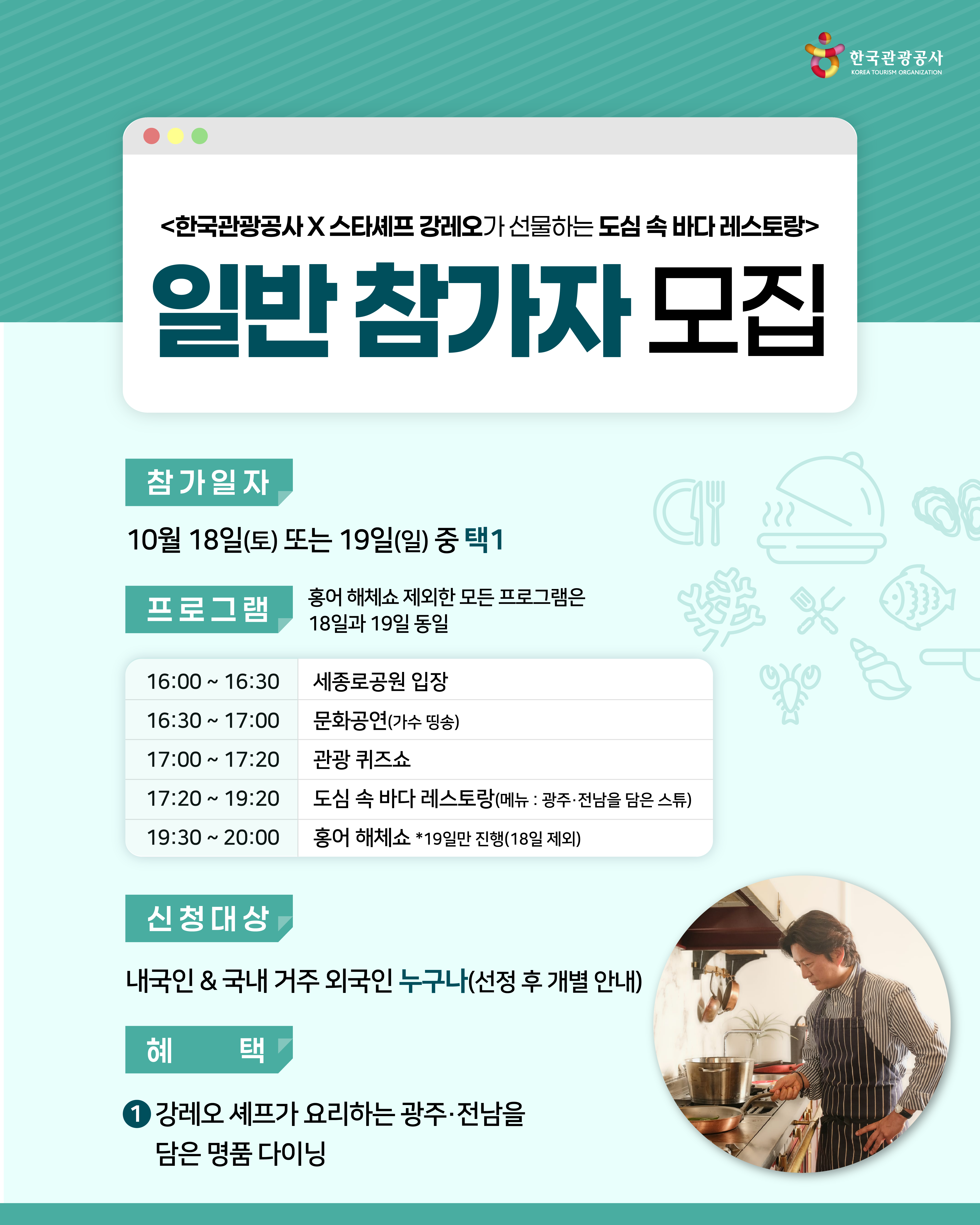 도심 속에서 만나는 남도의 바다 미식 체험 기회도 지원하세요!