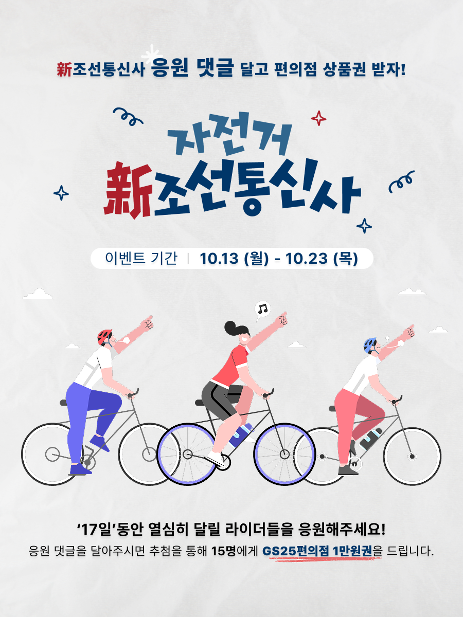 🎉여러분의 팔로우와 응원 댓글이 新조선통신사 라이더들의 발걸음을 더 힘차게 만듭니다.🎉