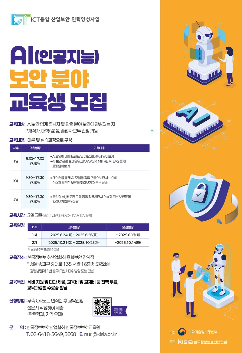 [KISIA] ICT융합산업보안 AI 분야(2차) 교육생 모집
