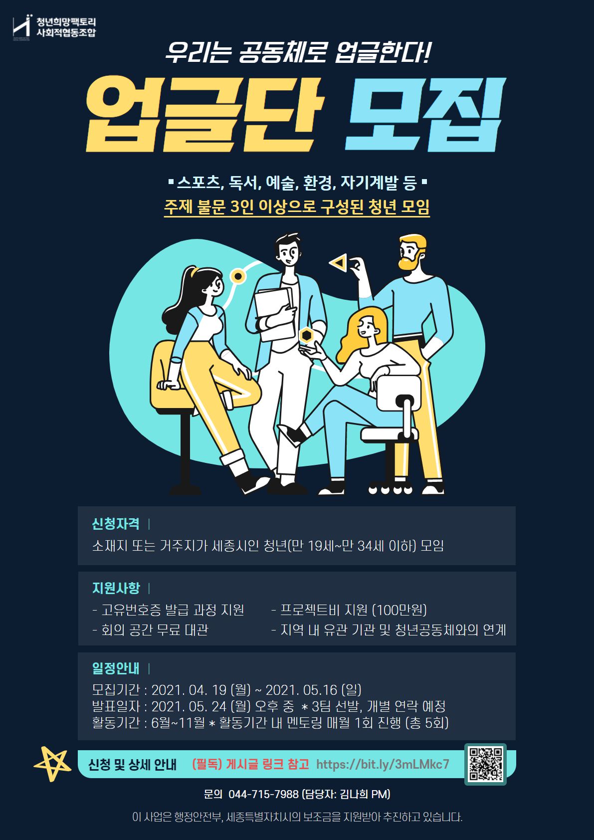 ☎ 044.715.7988(청년희망팩토리 사회적협동조합: 담당자 김나희 PM)