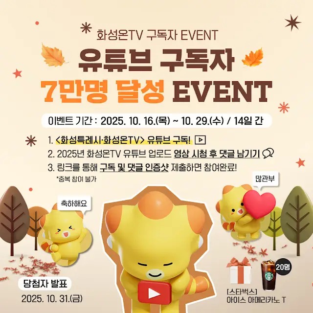 화성온TV가 구독자 7만명 달성을 축하하며