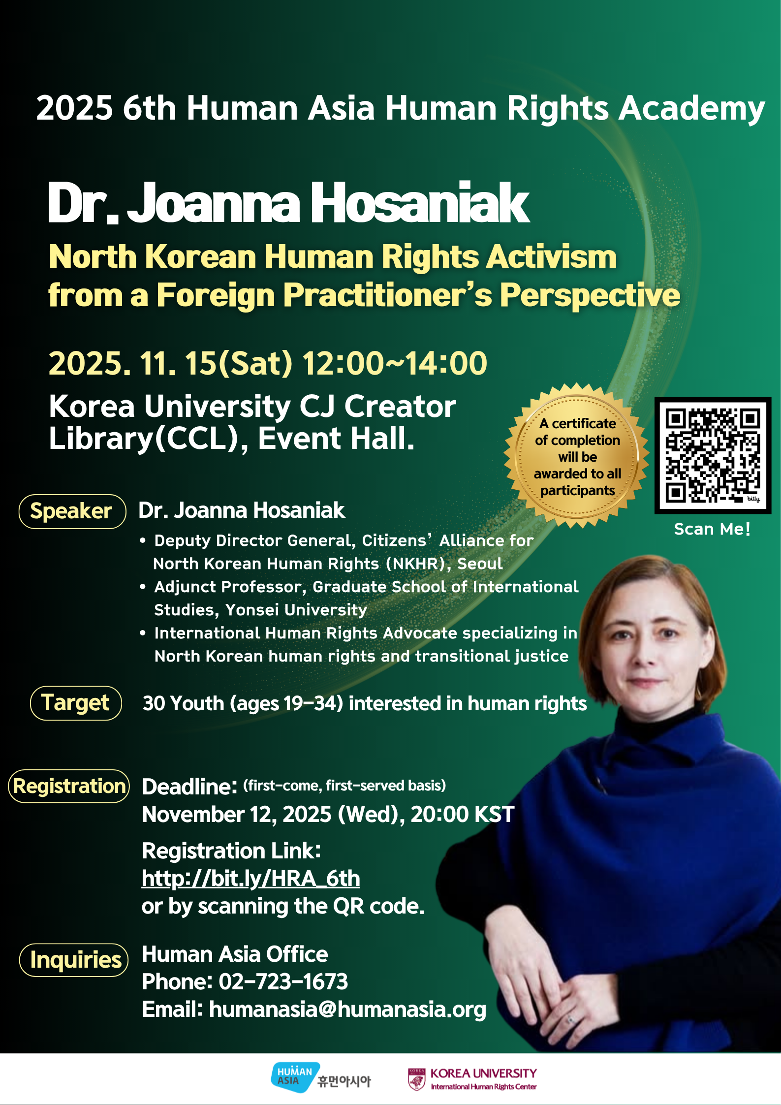 2025년 휴먼아시아 여섯번째 인권아카데미의 개최 소식을 전해드립니다!