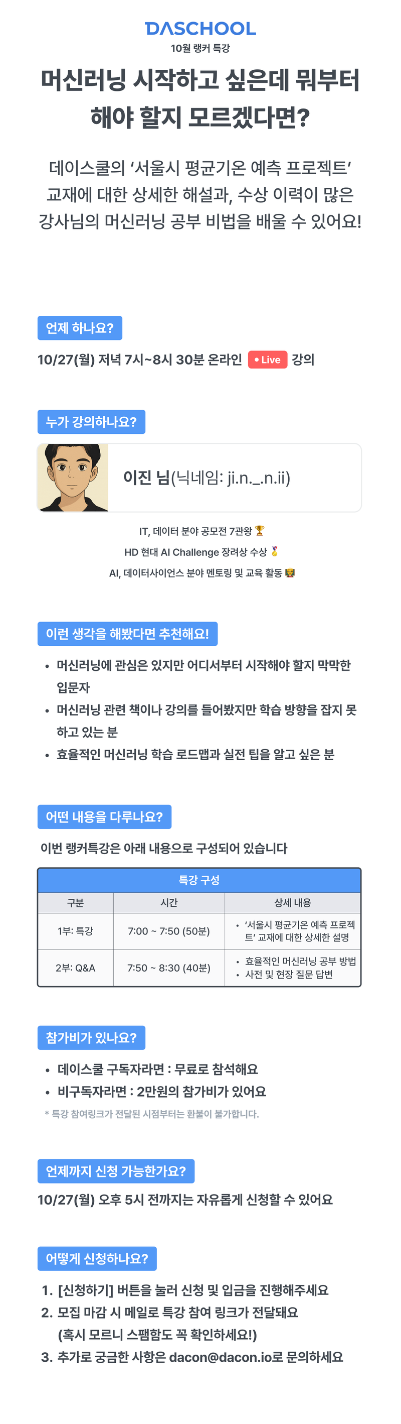 10/27(월) 오후 7시~8시 30분 온라인 Live 강의