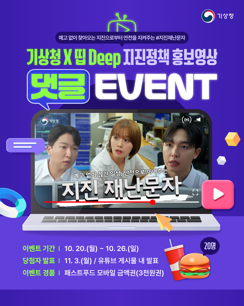 [기상청 X 띱 Deep 지진정책 홍보영상 댓글 EVENT🎉]