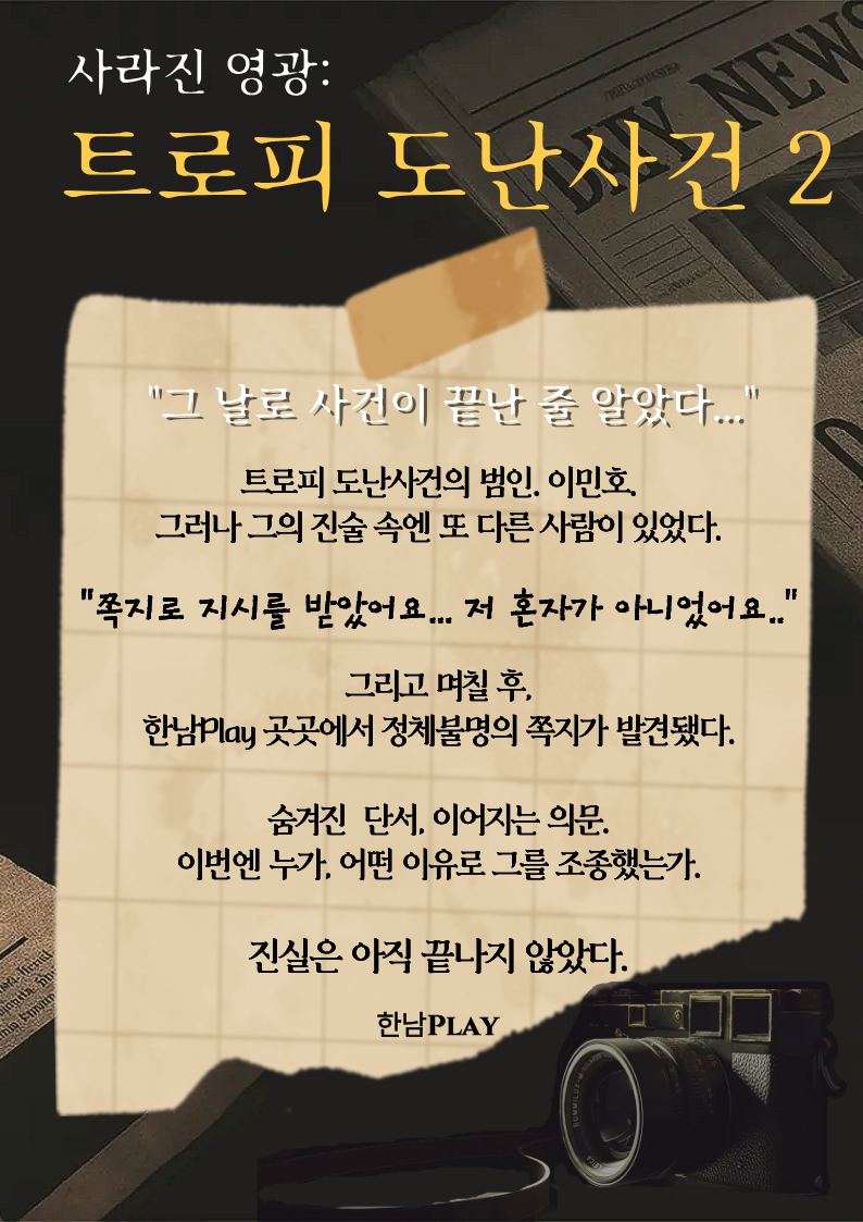[한남Play] 사라진 영광: 트로피 도난사건 2 🕵️♀️ 추리탐정단을 모집합니다!