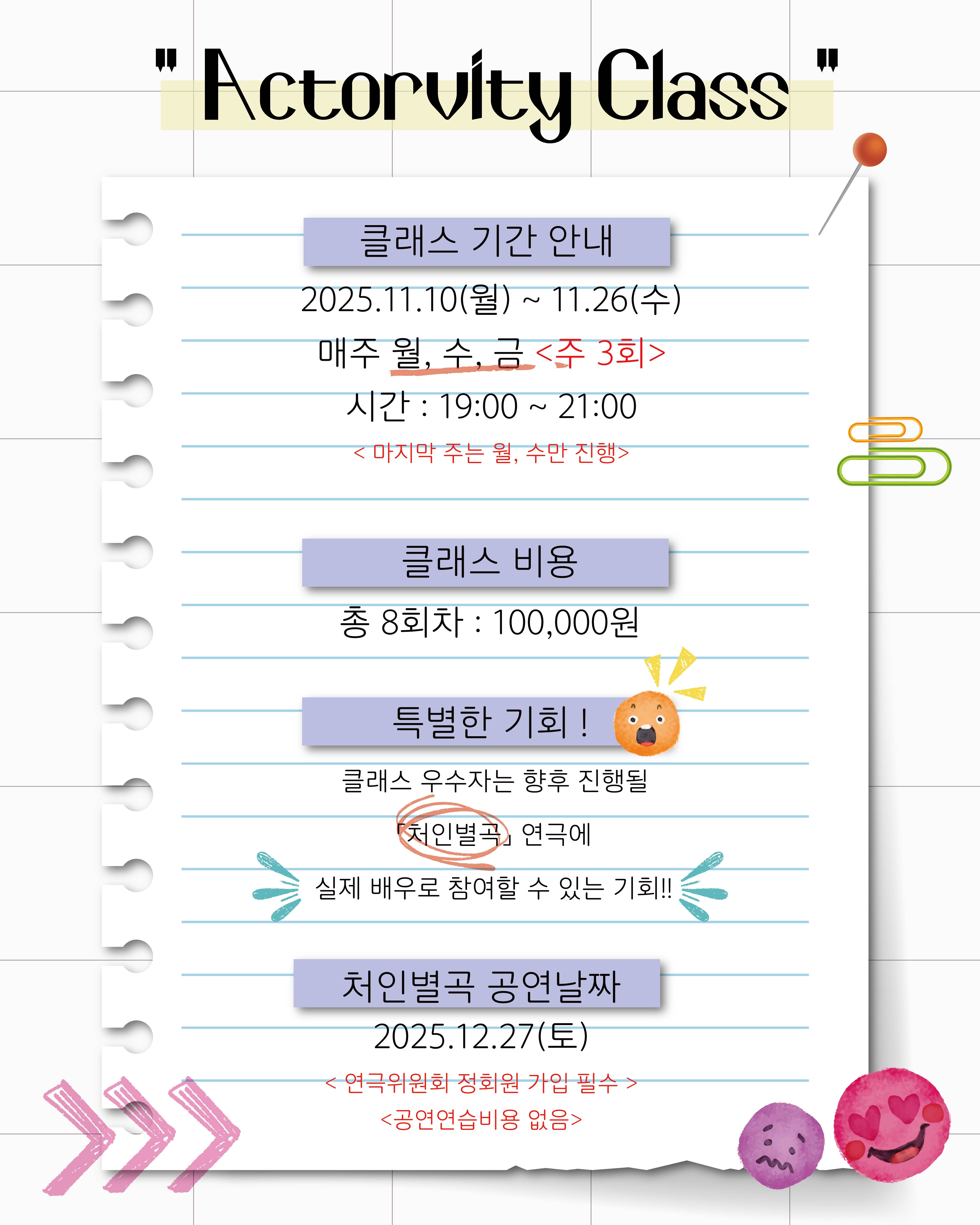 📣 Actorvity 연극 클래스 모집 안내