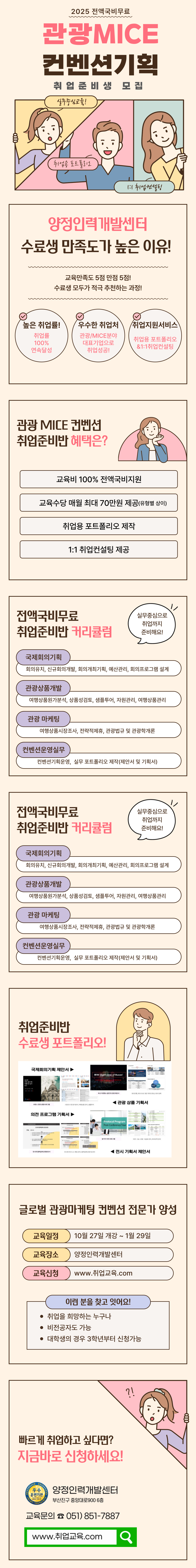 🚨이제는, 관광·MICE컨벤션 전문가로 양정인력개발센터에서 시작하세요!