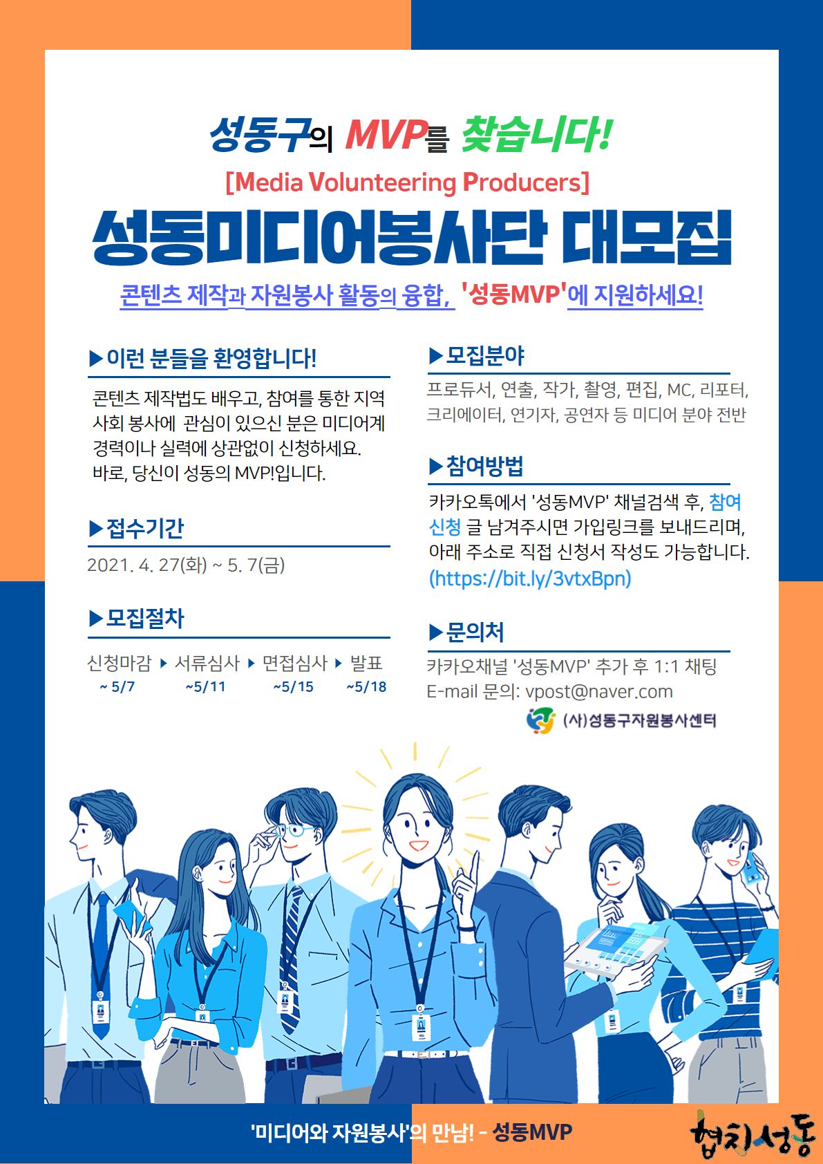 설립 취지와 제 소개는 아래 링크한 카카오채널 ‘성동MVP’를 통해 더 자세히 보실 수 있고요. 저희 봉사단은 경력이나 능력, 나이, 지역을 따지지 않습니다!