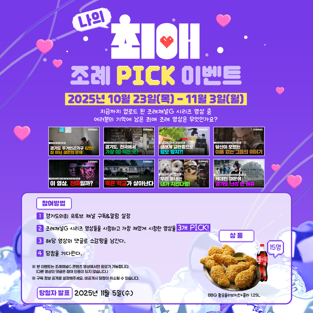 ※ 본 이벤트는 조례채널G 콘텐츠 시리즈 영상에서만 응모가 가능합니다.