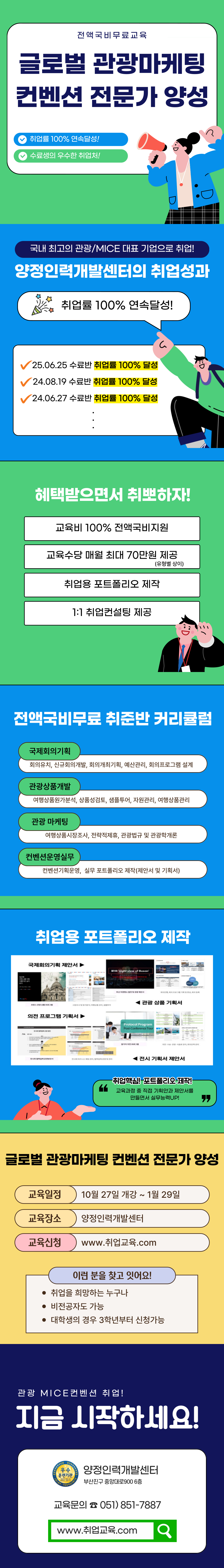 🚨이제는, 관광·MICE컨벤션 전문가로 양정인력개발센터에서 시작하세요!
