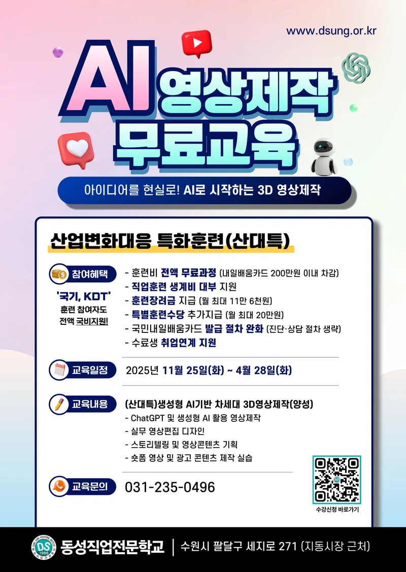 📢(산대특)생성형 AI기반 차세대 3D영상제작(양성)