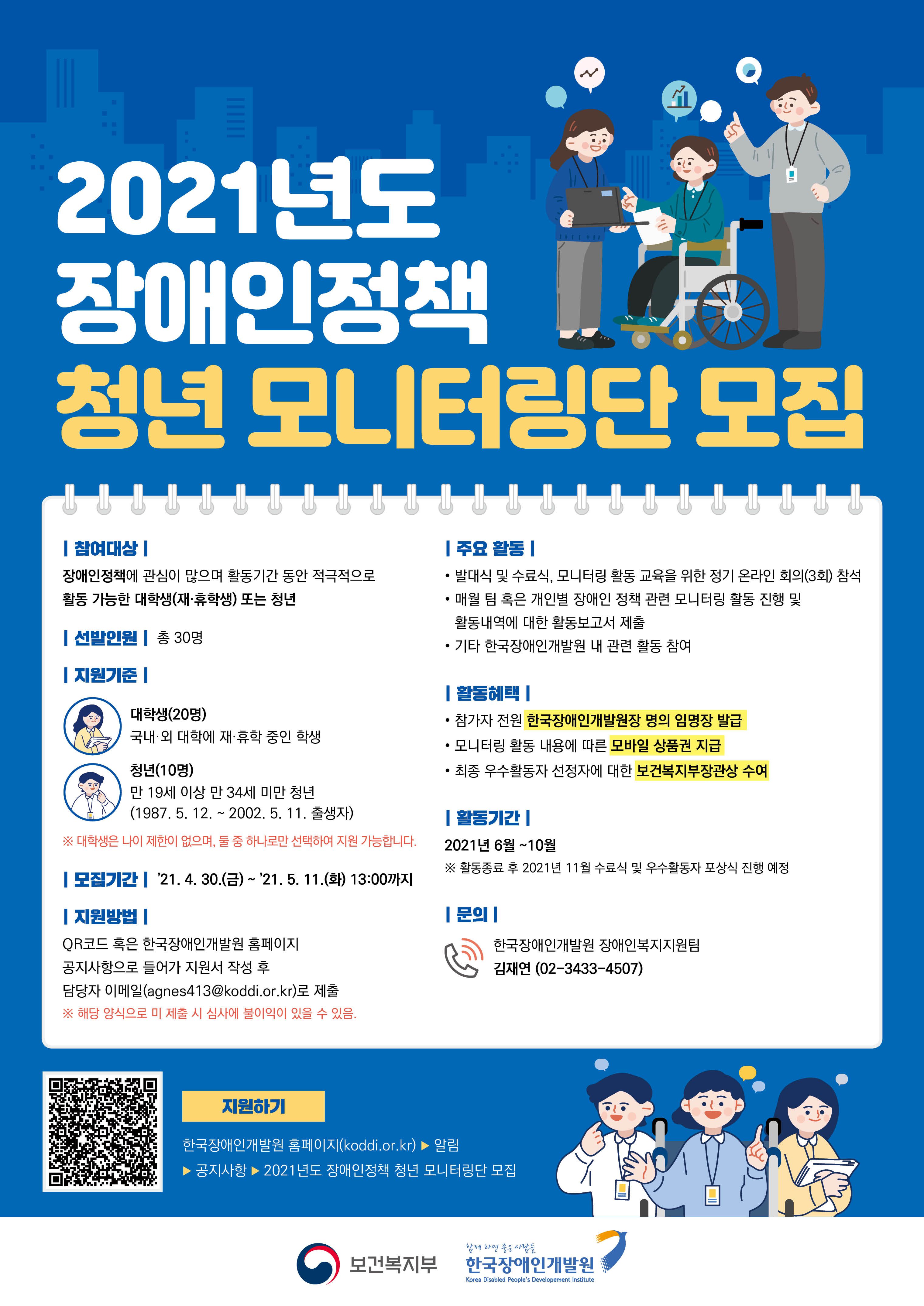 2021년도 장애인정책 청년 모니터링단 활동과 관련한 궁금한 사항이 있다면 언제든지 연락주세요 :)