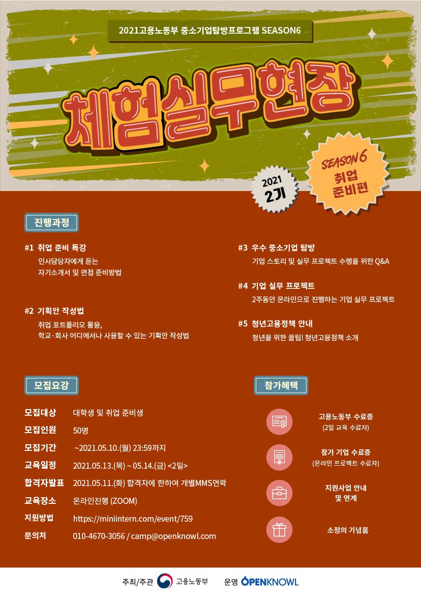 - 모집 마감 : ~ 2021.05. 10.(월)까지