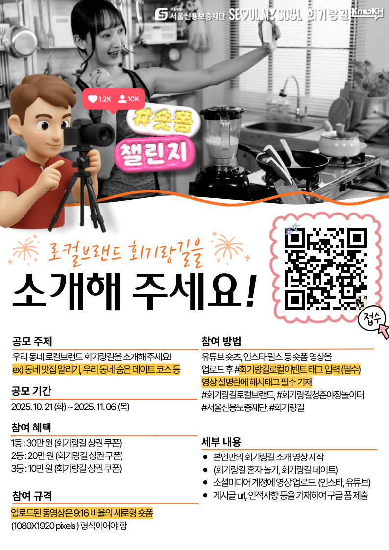 회기랑길의 개성과 매력을 자유롭게 표현한 숏폼 영상이라면 모두 OK!