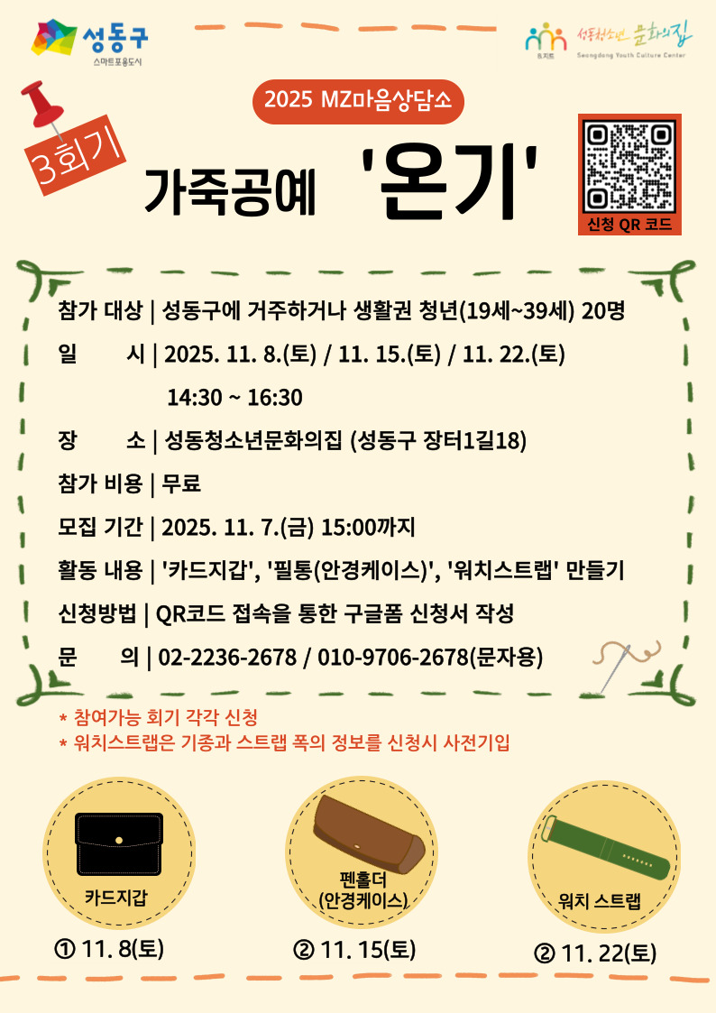 MZ마음상담소에서 청년을 위한 가죽공예 <온기> 프로그램을 진행합니다.