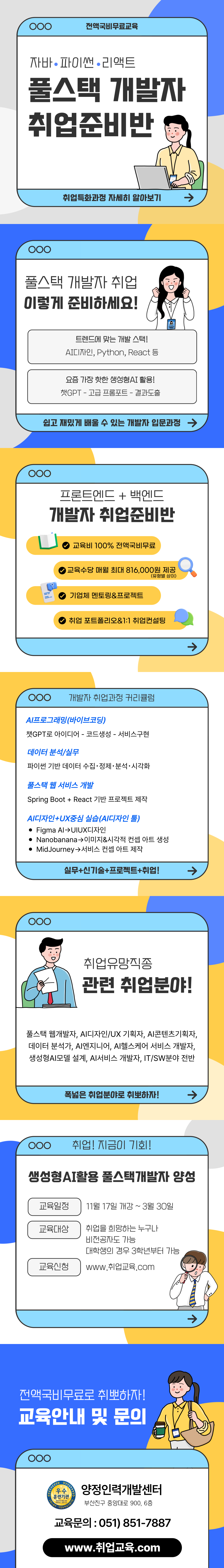 <생성형AI 기반 풀스택 개발자 양성 (AI디자인·파이썬·리액트)>