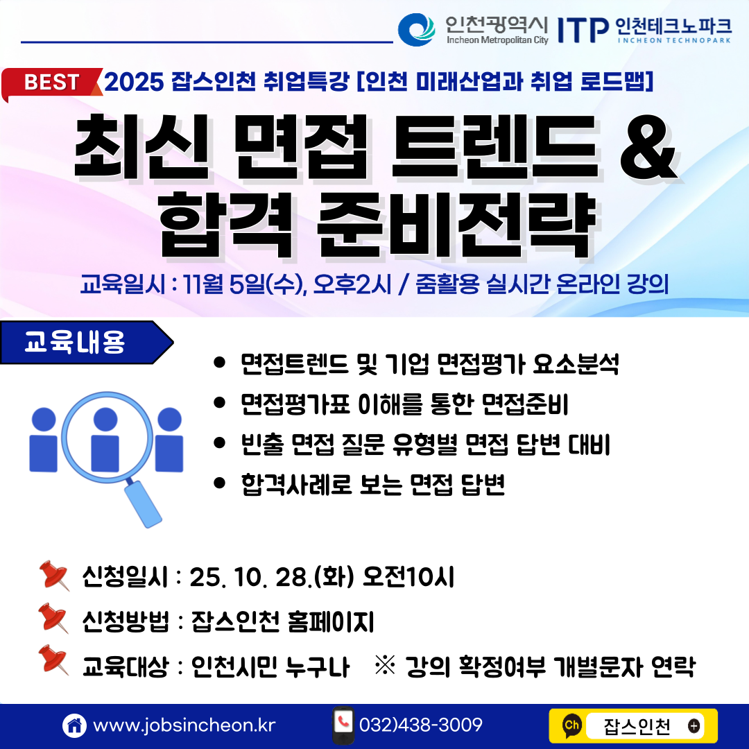 [job's인천]특강 참여자모집_최신 면접 트렌드&합격 준비전략(11/5)