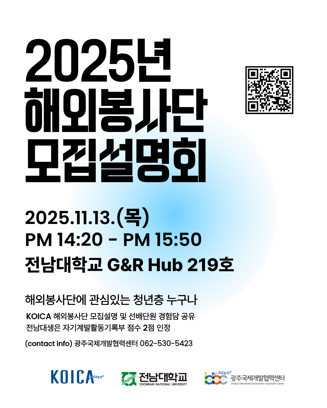 광주센터에서 💥2025년 해외봉사단 모집설명회💥를 진행합니다!