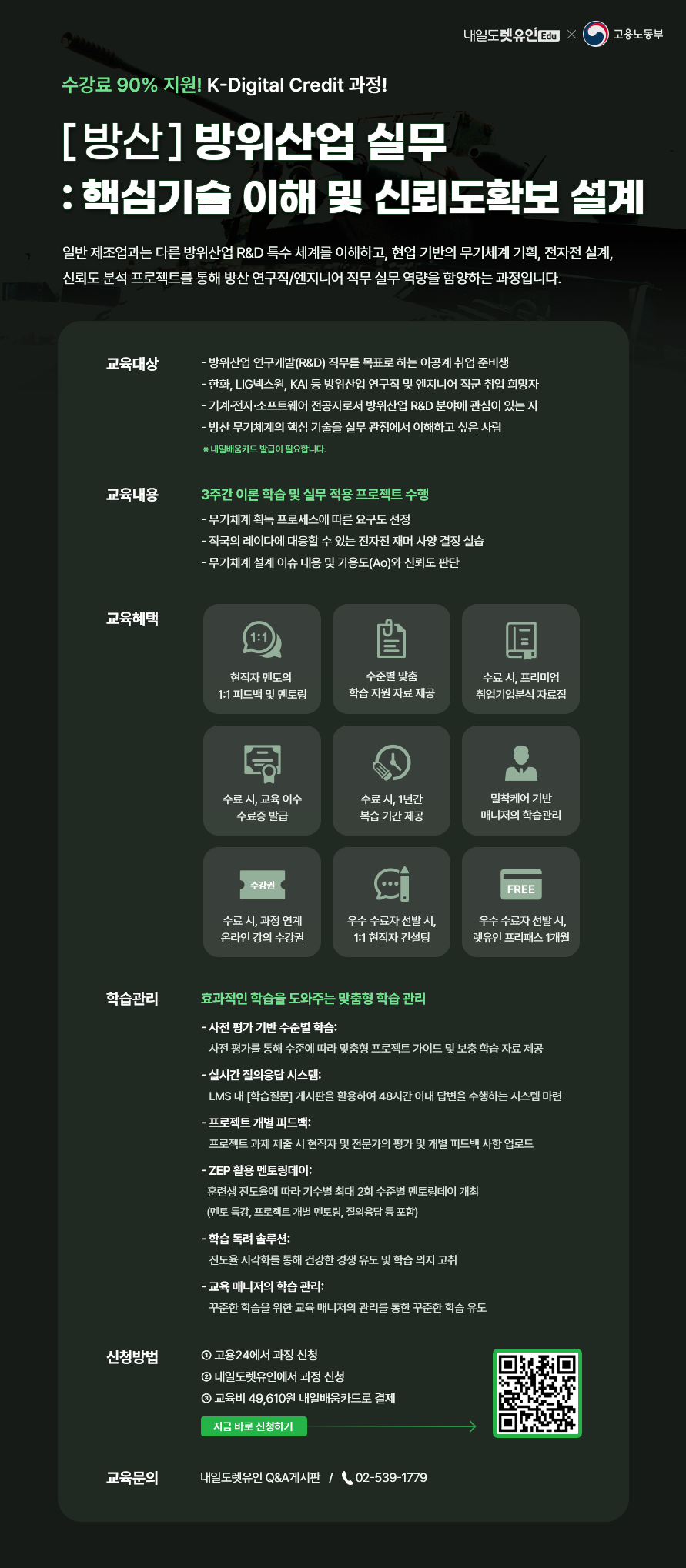 수강료 90% 지원 받아 방위산업의 실무 역량을 쌓을 수 있는