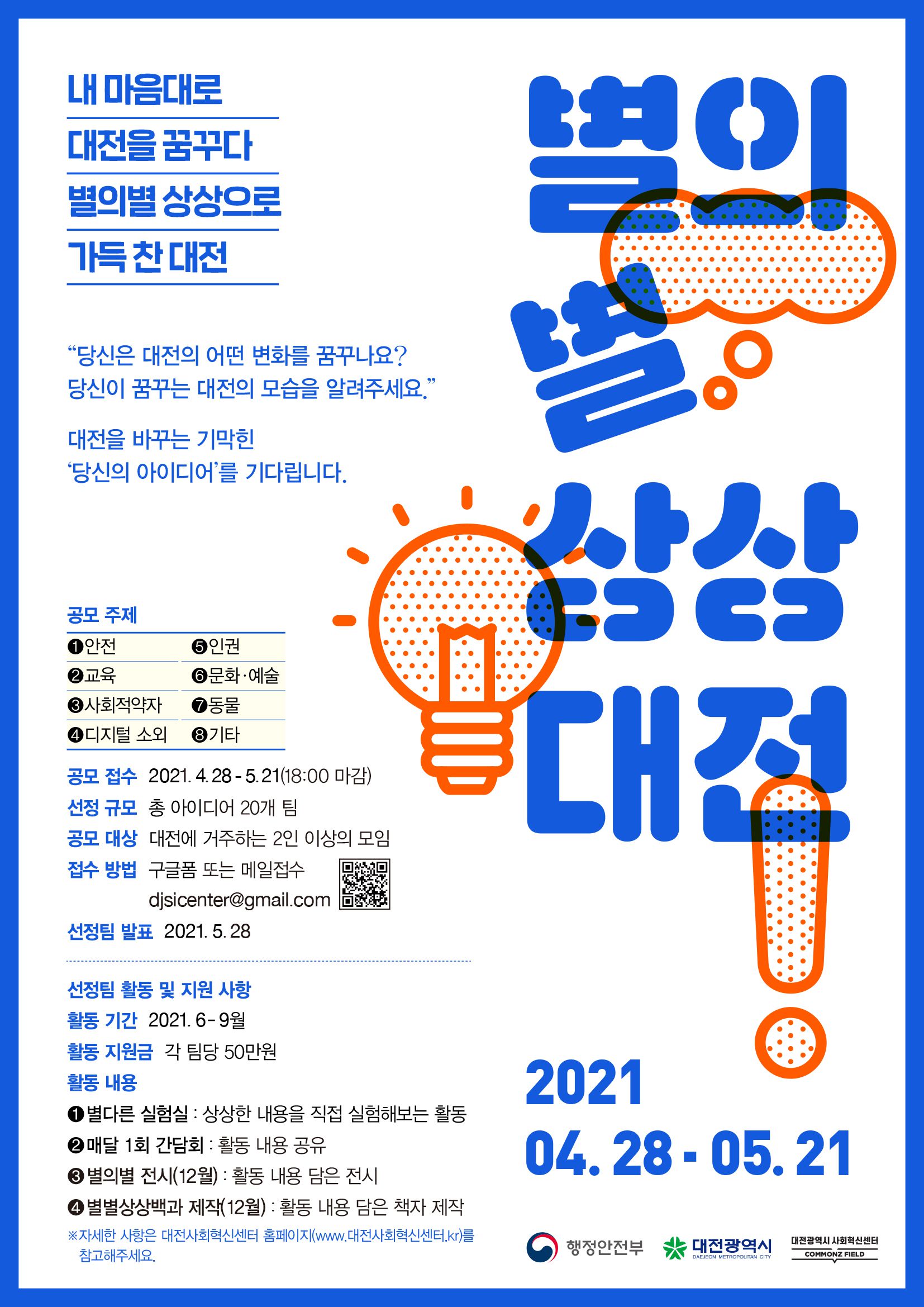 📌공모 내용: ① 대전을 주제로 한 별의별 상상 아이디어 내용 ② 아이디어를 떠올린 계기 ③ 아이디어 실현 방법