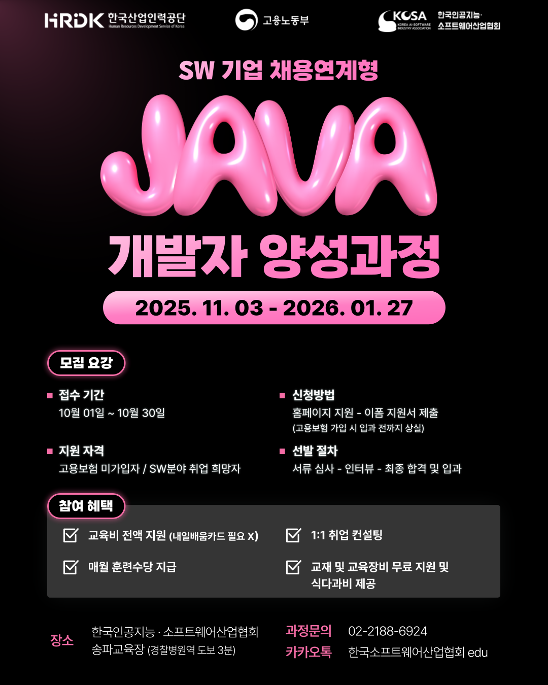 하반기 SW기업 채용연계형 JAVA 개발자 양성과정 교육생을 모집합니다.