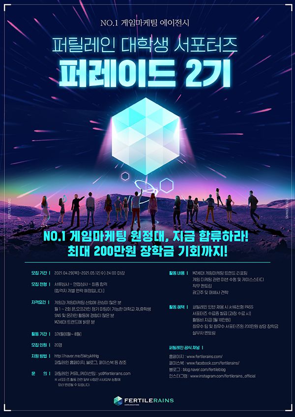 NO.1 게임마케팅 에이전시 퍼틸레인 대학생 서포터즈 '퍼레이드' 2기 모집