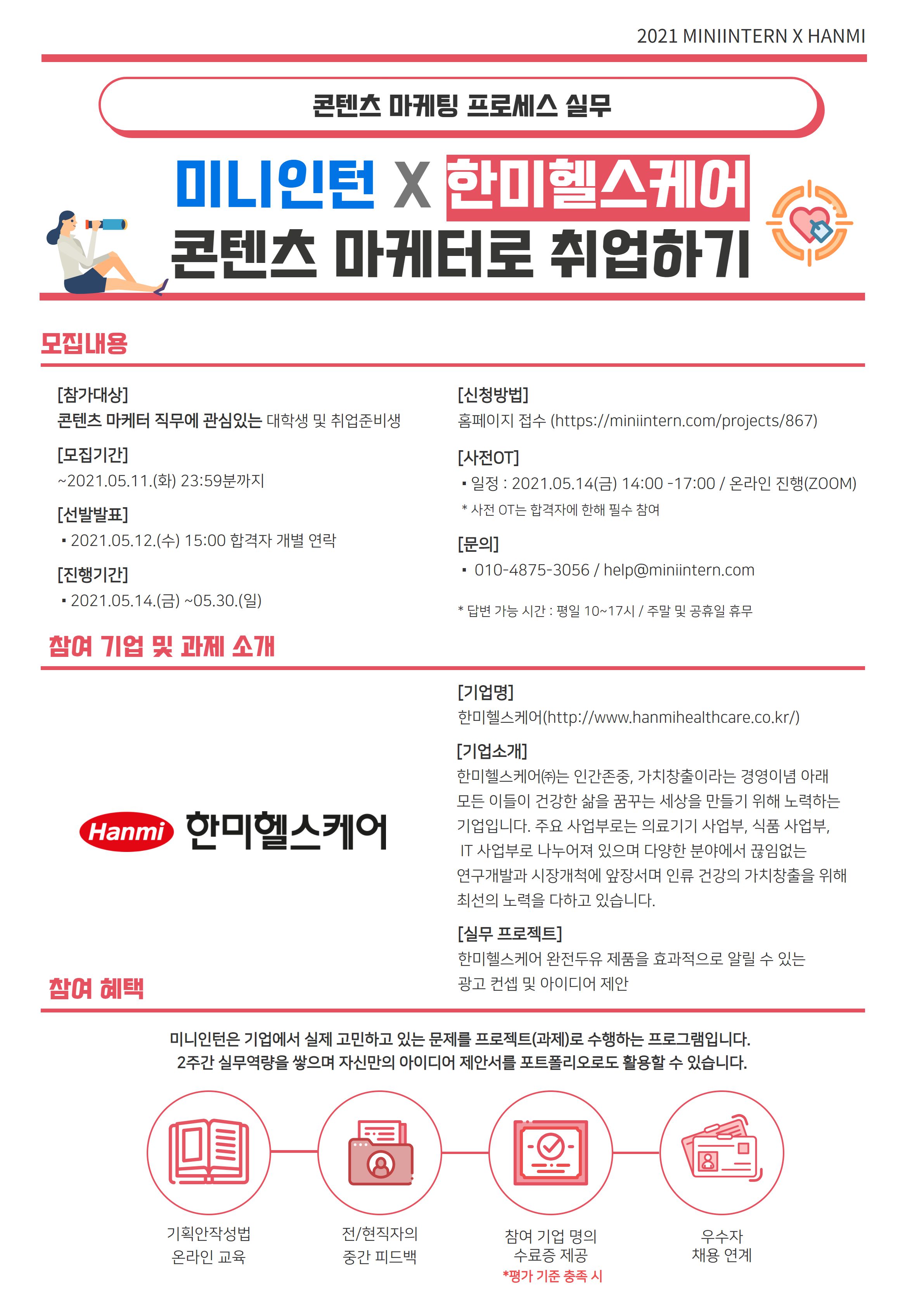 [미니인턴X한미헬스케어] 2주 후면, 나도 한미헬스케어의 콘텐츠 마케터로 취업한다! (~5/11)