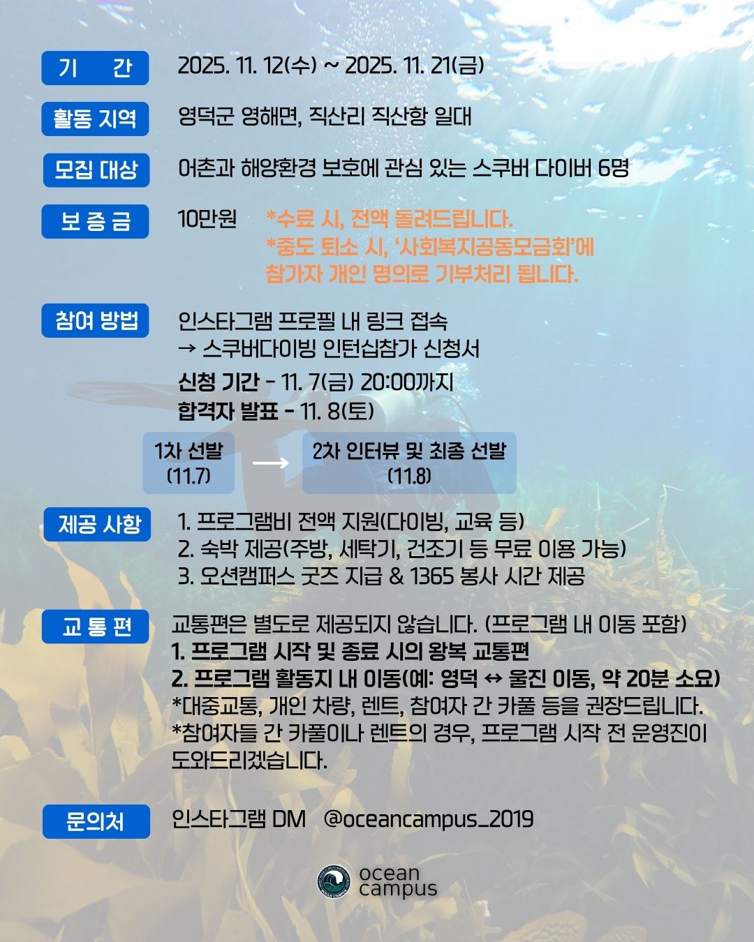 💙 #바다숲복원 #스쿠버다이빙 #해양환경 #오션캠퍼스 #청년활동