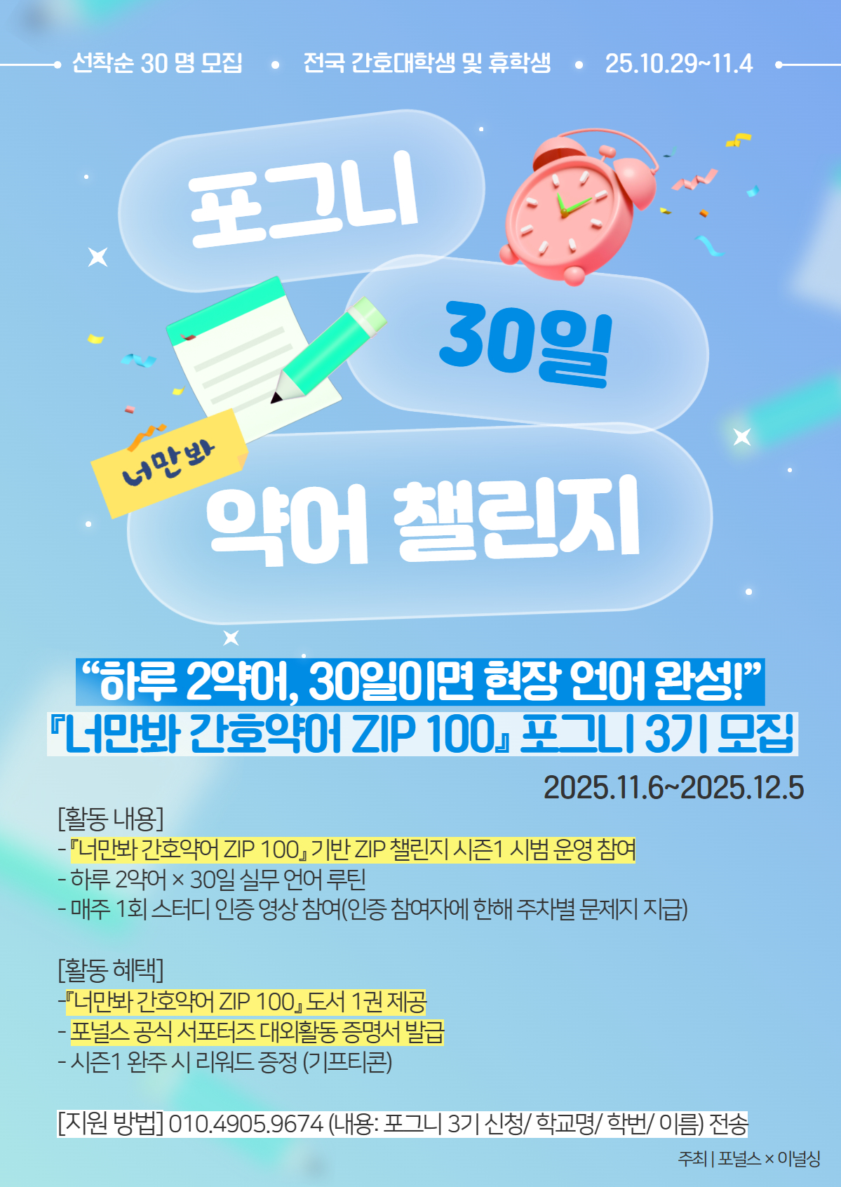 『너만봐 간호약어 ZIP 100』 포그니 3기 모집