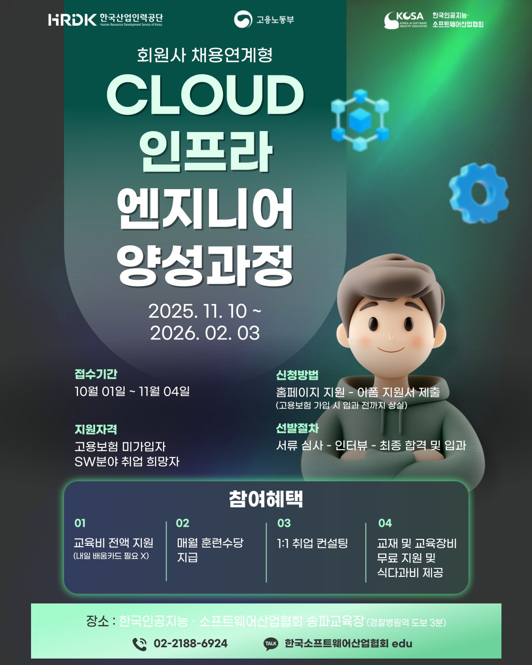 내배카 불필요, 전액 무료 및 훈련수당, 식다과비까지 지급되는 하반기 클라우드 인프라 엔지니어 양성과정 교육생을 모집합니다.