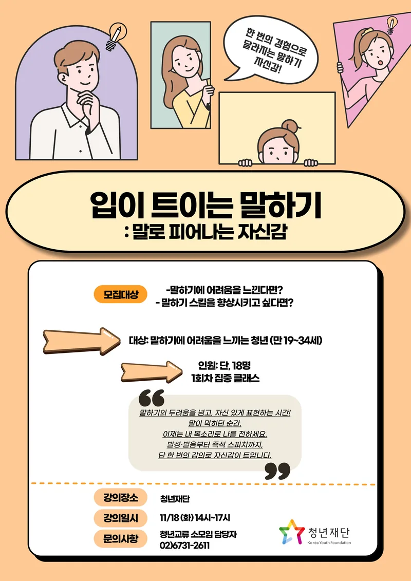 [청년재단] '입이 트이는 말하기: 말로 피어나는 자신감' 신청안내