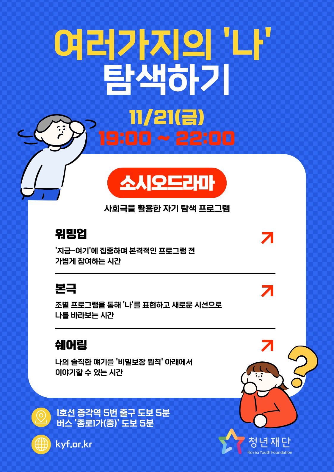 - 청년재단 강의장(버스 '종로1가(중)' / 지하철 1호선 '종각역' 5번 출구 부근)