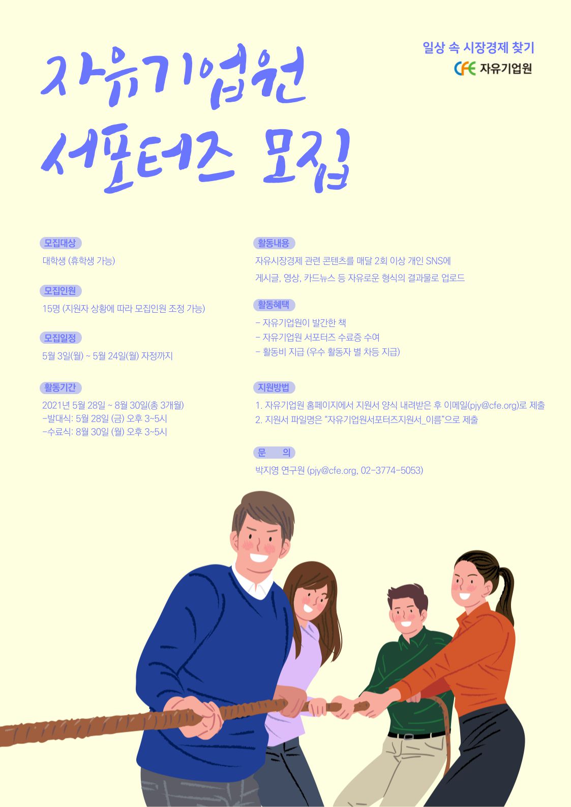 - (문의 및 접수) 박지영 자유기업원 연구원 (pjy@cfe.org, 02-3774-5053)
