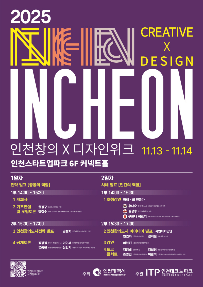 다양한 프로그램으로 인천시와 시민들이 함께하는 소통의 장을 만들기 위해 '2025 인천창의X디자인위크'를 2일간 개최합니다.